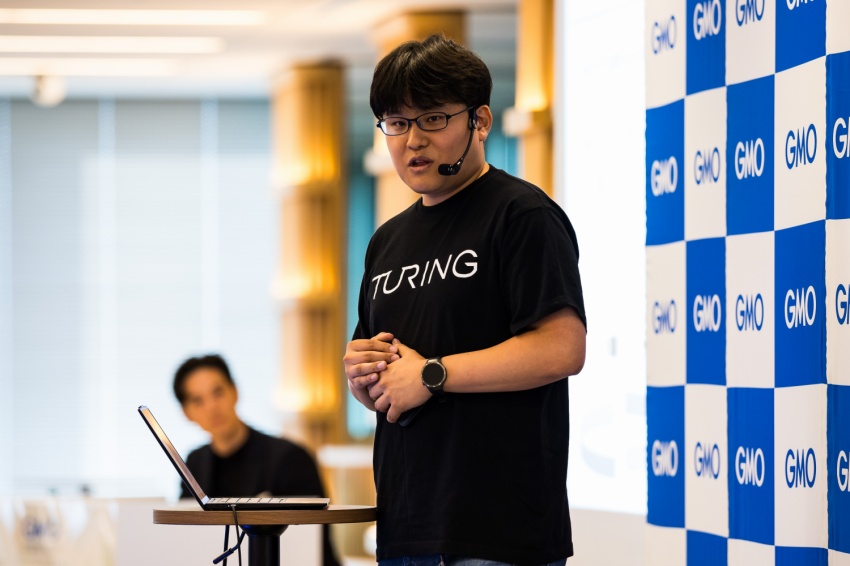 自動車の自動運転「レベル5」=完全自動運転の実現を目指し、自動運転AIに関する技術開発を進めているチューリングから、開発に必要な計算基盤の設計構築を担当する渡辺 晃平氏が登壇。