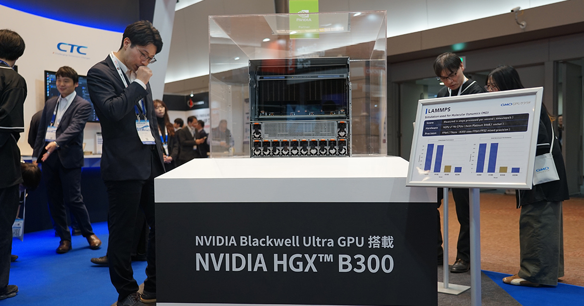 日本初の合同開催となる同会議では、「GMO GPUクラウド」の「NVIDIA HGX B300(以下、NVIDIA B300)」を搭載したサーバー筐体やNAMD・LAMMPSによるベンチマーク結果を展示、またチューリング株式会社様、デル・テクノロジーズ株式会社様、伊藤忠テクノソリューションズ株式会社(CTC)様、株式会社QunaSys様にご登壇いただいたブース内セッションも盛況のうちに終了いたしました。