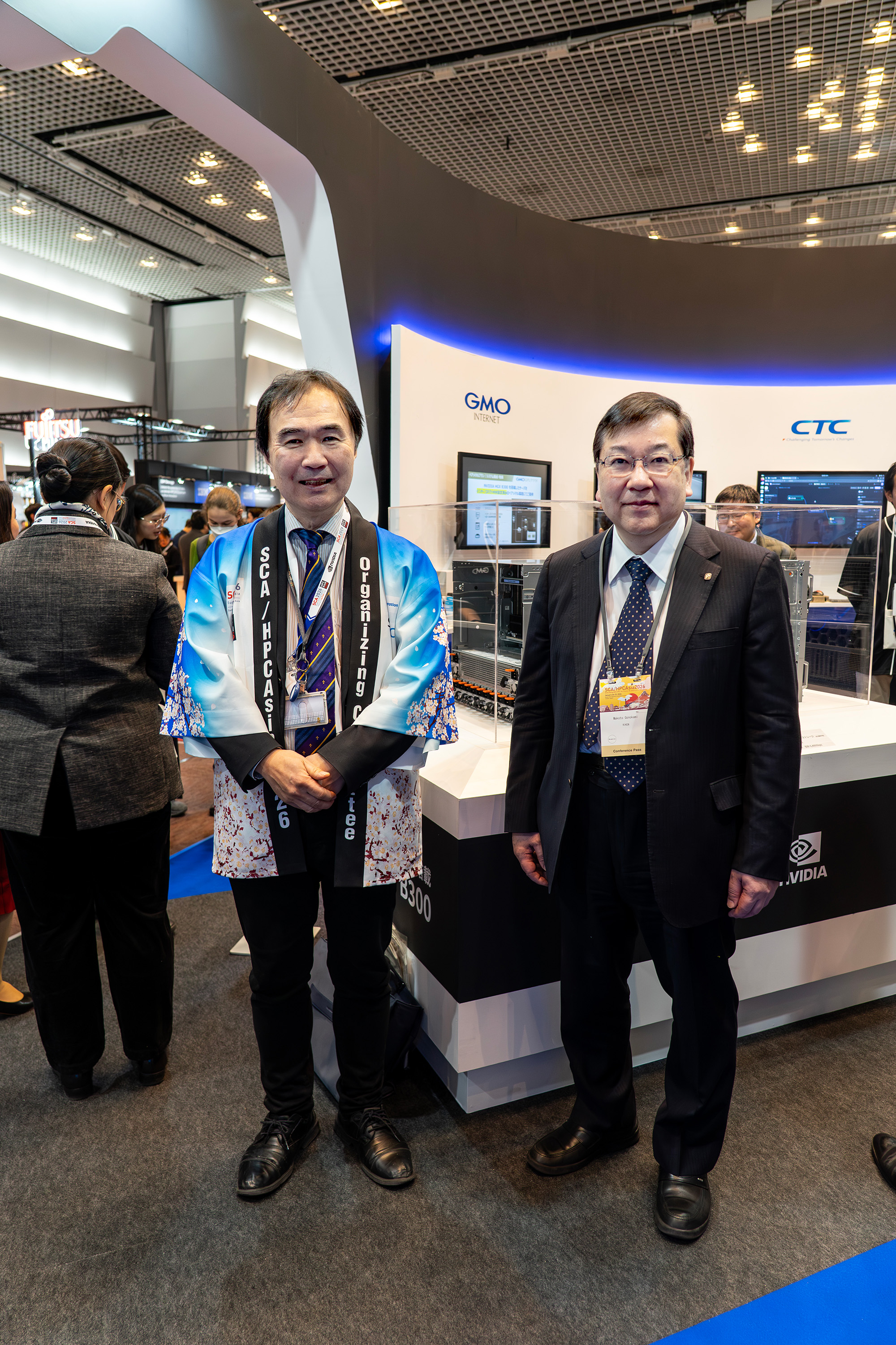 理化学研究所計算科学研究センター長 松岡聡 氏、ならびに理化学研究所理事長 五神真 氏にもブースにお立ち寄りいただきました。