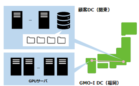 また、比較対象として、福岡県福岡市内のデータセンター内に同様のストレージ(DDN AI400X2)を設置し、GPUサーバー(NVIDIA HGX H100)と接続。