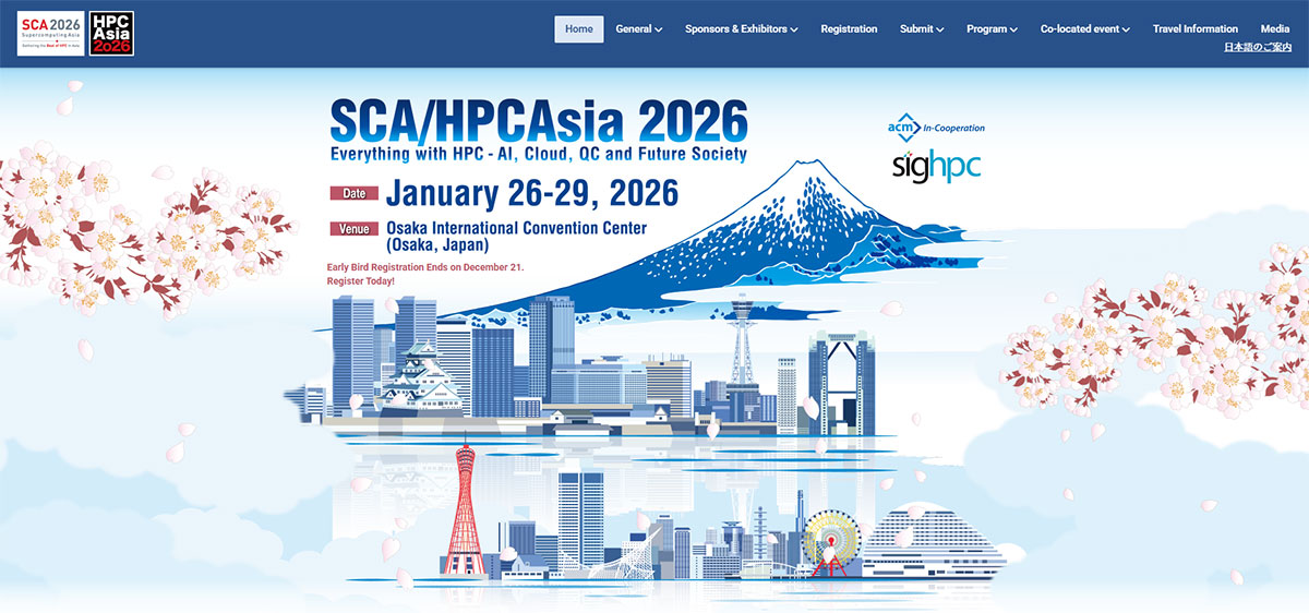 スーパーコンピューティング(SC)とハイパーパフォーマンスコンピューティング(HPC)の国際カンファレンス「SCA/HPCAsia 2026」が2026年1月26日〜29日、大阪府立国際会議場(グランキューブ大阪)で開催される。